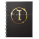 Modern Black Gold Monogram Script Name Notebook