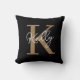 Modern Black Gold Monogram Script Throw Pillow