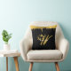 Modern Black & Gold Monogram Vintage Script Throw Pillow