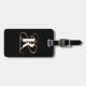 This stylish modern elegant monogrammed luggage tag features a gold script initial with a bold white initial and name superimposed, on a black background.
