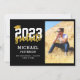 Modern Black Gold Script Photo Graduation Announcement Card. Celebrate the graduate with this modern and minimalist postcard. All the texts in this template are made easily for you to update with your own details and photos.