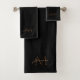 Modern Black & Gold Simple Minimalist Monogram Bath Towel Set