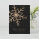 Modern Black Gold Snow Flake Script Christmas Holiday Card