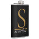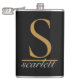 Modern Black Gold Stylish Monogram Girly Script Flask