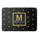 Modern Black Golden Circle Pattern Monogram Bath Mat