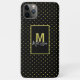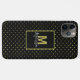 Modern Black, Golden Circle Pattern Monogram Case-Mate iPhone Case. Golden Circle Pattern on a black background with a beautiful monogram letter and name that you can change with your own name or business name.