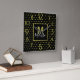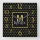 Modern Black Golden Circle Pattern Monogram Square Wall Clock