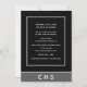 Send your 20th class reunion classmates our modern flat card invitation. This elegant design template features a black and gray background with white typography that reads "20th Class Reunion" with your school name and year to personalize Below is your school's monogram. The back of the card has more of your celebration details for you to customize. Designed by world renowned artist ©Tim Coffey.