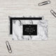 Elegant and simple white marble texture print with black accent jewelry design customizable business card template.