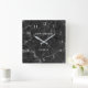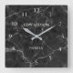 Modern elegant black gray marble pattern, family name, Square Wall Clock.