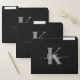 These simple, elegant black set of 3 pocket folders with your first name in a trendy script font in white typed over your first initial in a modern cap font in gray are perfect for keeping yourself organized. They're stylish and trendy and yet very classic.