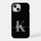 This simple, elegant black iPhone 15 Case with your first name in a trendy script font in white typed over your first initial in a modern cap font in gray would look fabulous on your cell phone and will keep it protected from breakage. It's stylish and trendy and yet very classic.