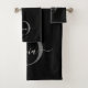 Modern Black Gray Silver Monogram Script Name Bath Towel Set