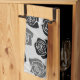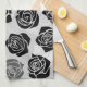 Modern Black Gray White Rose Flower Pattern Kitchen Towel