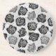 Modern Black Gray White Rose Flower Pattern Sandstone Coaster