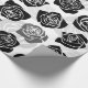 Modern Black Gray White Rose Flower Pattern Wrapping Paper