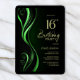 Plain white envelopes are included with paper invitations and will come to fit the invitation size you select. If you don’t need the envelopes, you may choose to not receive them by selecting the dropdown below "Envelopes" and choosing "None." If you’d like to have a design on your envelopes, you can browse all of these available envelopes to find the design that complements your Modern Black Green 16th Birthday Party Invitation.