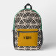Modern Black Green Yellow Geometric Monogram Printed Backpack