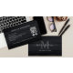 Customize this "Modern Black Grey Brush QR Code Social Media Business Card", featuring dark grey brush strokes on a black background, a monogram of your name and full name in a beautiful modern script, professional title, contact information, social media username, social media icons (Instagram, Facebook) address, and QR code. Please get in touch with the store designer for further customization if needed.