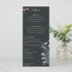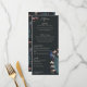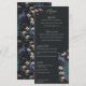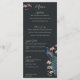 This vintage-inspired Modern Black Hand-Drawn Peacock Wedding Menu features custom hand-drawn illustrations of an exotic blue and teal peacock nestled within a lush arrangement of Magnolia greenery. Showcase the vibrant contrast of cream and blush pink magnolia flowers, all set against a modern, nearly black background. The reverse side includes a coordinating seamless floral and bird pattern. This fully editable wedding reception dinner menu is perfect for a whimsical garden, botanical, or exotic bird-themed wedding. Personalize every detail, from the bride and groom’s names to your complete four-course plated meal itinerary, including appetizers, main courses, dessert selections, and custom cocktails.