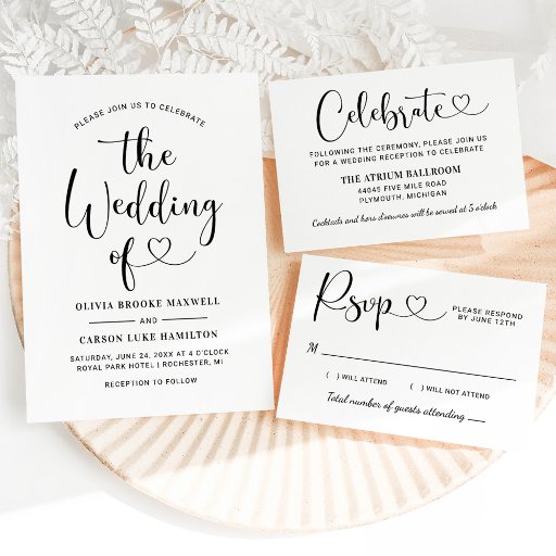 Modern Black Heart Script Wedding SuiteDesigned by Kat Fusinski