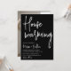 Let your guests know how excited you are for your new home with this elegant modern housewarming invitation. This polished design features a black and white palette, creating a timeless look that is perfect for any occasion. Invite your family and friends to join you and make a special housewarming to remember.