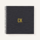 Modern Black Leather Pattern Monogram Initials Notebook