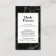 A sleek, modern black marbled background creates a luxe visual on these designer business cards. Your name or business name is elegantly styled in a faux gold framed box for a striking logo. Add your title, web site or descriptive text around the edges or leave blank. This double-sided card design allows ample room on the backside for your contact info and details. Art and design © 1201AM CREATIVE