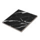 This ceramic tile features an elegant black marble design with gray and white veins.