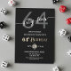 A modern minimalist design featuring elegant calligraphy on a black background. Customize the details for a cool Birthday Celebration.