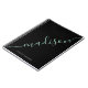 Modern, girly black and green custom personalized spiral notebook. This simple design features black color background, with mint green name or monogram text template. The name is written with a huge beautiful swirly hand lettered style script. Great feminine gift for girls and woman. If you need help or matching items, please contact to me.