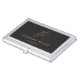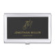 Keep your business cards organized and stylish with this modern black business card case. The design features a golden monogram, name and title, adding a personal touch to your professional look. This case is perfect for carrying in your bag or briefcase, and makes a great gift for colleagues and clients.