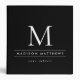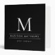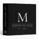 Modern black binder with white text featuring your monogram initial on front and spine and template fields for your name and subject