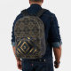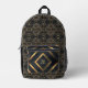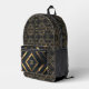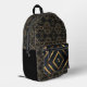 Stylish and modern black with gold shapes monogrammed backpack.
