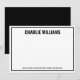 Modern, blank notecard with your name and custom text in bold fonts and a thick border. Black text on a white background. You can change all colors, move and resize elements with the design tool.