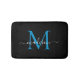 Modern Black Bright Ocean Blue White Monogram Script Elegant Girly Bath Mat
