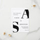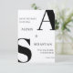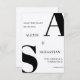 The front of the card features your initials, names and wedding date in a bold classic serif font, centered against a stark white background.