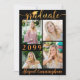 Modern, simple black and orange graduation announcement featuring faux metallic orange calligraphy script typography and graduation cap and personalized with 4 photos on the front and one on the back. The class year is editable. The back side features a full-bleed photo and your custom text for details about your graduate. This announcement card is also available as a digital file download for printing locally and/or sharing online. ASSISTANCE: For help with design modification/personalization, transferring the design to another product or if you would like coordinating items, contact the designer BEFORE ORDERING via Zazzle Chat or makeitaboutyoustore@gmail.com.