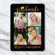 Modern, simple black and orange graduation announcement featuring faux metallic orange calligraphy script typography and graduation cap and personalized with 4 photos on the front and one on the back. The class year is editable. The back side features a full-bleed photo and your custom text for details about your graduate. This announcement card is also available as a digital file download for printing locally and/or sharing online. ASSISTANCE: For help with design modification/personalization, transferring the design to another product or if you would like coordinating items, contact the designer BEFORE ORDERING via Zazzle Chat or makeitaboutyoustore@gmail.com.