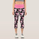 Modern Black Paisley Pink Flamingo Capri Leggings