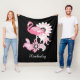 Modern Black Paisley Pink Flamingo Fleece Blanket