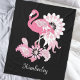 The product design features a flamingo with kaleidoscopic paisley patterns in shades of pink. This tropical bird illustration with personalized text makes a modern and unique fleece blanket.