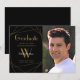 This modern and elegant graduation announcement card with one photo and initial letter name monogram with geometric pattern on gold and black background looks really presentable to give to family and friends to announce an up coming elegant graduation day. The great thing here is that you can make it personalize by adding the name, initial and text. Photography © Storytree Studios, Stanford, CA