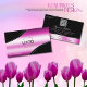 The design features shimmering pink colors on black with pretty fine curved silver decor lines.