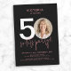 Modern Black Pink Photo 50th Birthday Invitation