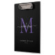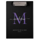 Modern Black Purple Monogram Elegant Script Name Clipboard