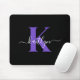 This simple, elegant black mousepad with your first name in a trendy script font in white typed over your first initial in a modern cap font in purple is perfect for your office/desk. It's stylish and trendy and yet very classic.