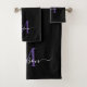 Modern Elegant Black Purple Violet Monogram Script Name Bath Towel Set