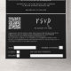Customizable modern black QR Code All In One Invitation. Includes RSVP with a scannable QR code that you can link to your wedding website. Generate your own unique QR code via the "personalize this template" feature on the product page. Add your URL to the area provided and a brand new QR code will generate on the design just for you.
