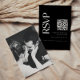 A modern, black wedding RSVP card, designed with a QR code for your guests to scan and access your wedding website, and a customizable photo section on the back. Feel free to change background color, text colors, etc., by clicking on "personalize this design," then "edit using design tool."